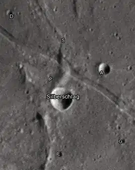 Por convención estos elementos son identificados en los mapas lunares poniendo la letra en el lado del punto medio del cráter que está más cerca de Silberschlag.