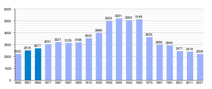 | Gráfica de evolución demográfica de Siles[8] entre 1842 y 2021 |