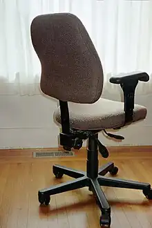 Las sillas giratorias pueden tener ruedas en la base que permitan al usuario mover la silla alrededor de su área de trabajo sin levantarse. Este tipo es común en las oficinas modernas y, a menudo, también se las conoce como sillas de oficina. Las sillas giratorias de oficina, al igual que las sillas de ordenador, suelen incorporar un elevador de gas para ajustar la altura del asiento, pero no suelen ser grandes (por ejemplo, reclinables) sillones giratorios.