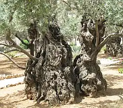 En mayo de 2010, un grupo de colonos israelíes prendieron fuego a un olivar de 11 dunams (1,1 hectáreas) en el valle de al-Rababa, en Silwan, al sur de la Ciudad Vieja de Jerusalén, incluidos tres olivos con más de 300 años de antigüedad que no sobrevivieron.[109] En un artículo del New York Times de 2011, estos ataques[110] fueron calificados como actos de vandalismo. Otras destrucciones parecidas de olivares han tenido lugar en Jabal Jales (una zona cercana a Hebrón) y en Huwara.[111] Según los cálculos de la ONU, unos 11,000 olivos propiedad de palestinos en la Cisjordania ocupada fueron dañados o destruidos en 2013.[112][113]