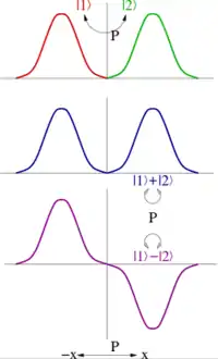 Cuando la paridad genera el grupo abeliano , uno puede siempre tomar combinaciones lineales de estados cuánticos tales que sean pares o impares bajo paridad (véase en la figura). Entonces, la paridad de dichos estados es ±1. La paridad de un estado multi-partícula es el producto de las paridades de cada estado; en otras palabras, la paridad es un número cuántico multiplicativo.