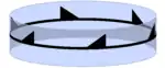 - Cnh, [n+,2], (n*) de orden 2n (es decir,simetría prismática o del grupo orto-n-gonal; el grupo abstracto Zn × Dih1); para n=1 esto se denota por Cs (1*) y se llama simetría especular, o también simetría bilateral. Tiene simetría especular con respecto a un plano perpendicular al eje de rotación n.