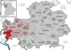 Se encuentra ubicado al oeste del estado, en la región de Franconia Media, a poca distancia al sur de la orilla del río Meno —un afluente derecho del Rin— y al este de la frontera con el estado de Baden-Wurtemberg.