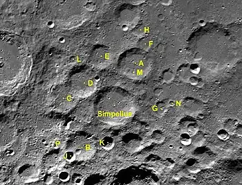 Por convención estos elementos son identificados en los mapas lunares poniendo la letra en el lado del punto medio del cráter que está más cercano a Simpelius.