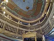 La gran sala interior es asimétrica y tiene forma elíptica. Las paredes están recubiertas de madera y los bancos también son de madera. En las paredes hay varias inscripciones sagradas y en particular Los diez mandamientos, que se encuentran en el acceso al Arca. El púlpito se destaca en la sala.[2]