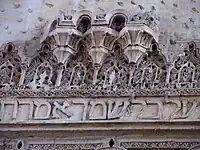 No son muchos los restos de inscripciones que nos han llegado. En el muro sur encontramos un fragmento del libro de los Proverbios, y en los listones que enmarcan las puertas hay fragmentos del Salmo 122. En los muros oriental y occidental también hay fragmentos, pero menor calidad. En el muro norte encontramos versos muy completos del verso 4 del Cantar de los cantares.