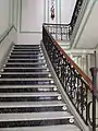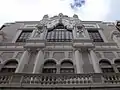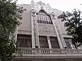 La fachada más destacable de este edificio es la que hace chaflán entre las calles Trinidad y Cervantes, que presenta un estilo arquitectónico muy ecléctico, donde pueden verse influencias del neorococó. Presenta una rica decoración en la que juegan un importante papel diversos elementos decorativos como la cerámica, ménsulas, capiteles y molduras. El edificio presenta como remate un campanario con un templete apoyado sobre columnas salomónicas y pináculos.[2]