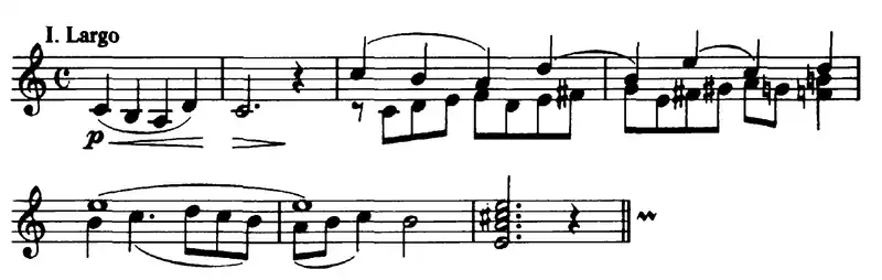 - I. Largo - Allegro vivo, en Do mayor; el Largo, en 4/4; el Allegro vivo, en 2/4