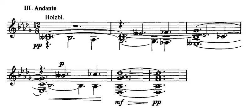 - III. Andante, en Re bemol mayor y en 12/8