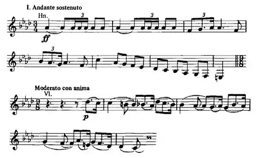 - I. Andante sostenuto – Moderato con anima – Moderato assai, quasi Andante – Allegro vivo, en fa menor