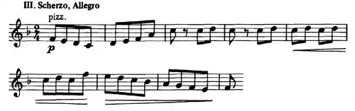 - III. Scherzo. Pizzicato ostinato – Allegro, en fa mayor