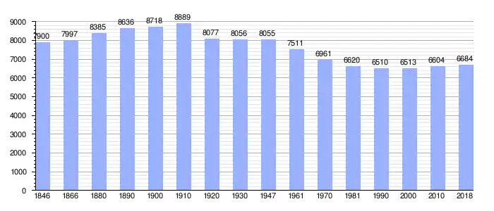 Todos los datos históricos relativos al actual municipio, el siguiente gráfico refleja su evolución demográfica, incluyendo municipios después de efectuada la fusión el 1 de enero de 1977.