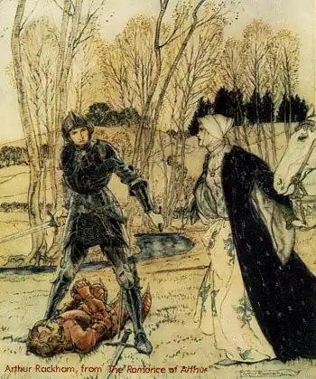 En la leyenda, Gareth sale en auxilio de Lynette, una damisela que ha llegado solicitando la ayuda de Sir Lanzarote del Lago. En el transcurso de la aventura, Lynette constantemente desprecia a Gareth, pues ignora su verdadera identidad, y piensa que se trata de un ayudante de cocina solamente. Lynette no llega a apreciar a su campeón hasta ver cómo éste derrota en sucesión al Caballero Negro, al Caballero Verde, al Caballero Bermejo y al Caballero Azul.[1]