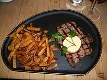 - Solomillo Wellington, un plato compuesto de solomillo de ternera, vaca o buey, al que se le puede añadir mostaza, foie, acompañado de un sofrito de champiñones y cebolletas, se cocina en horno envuelto en masa de hojaldre.