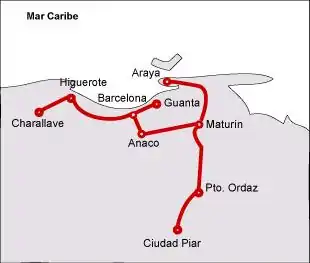 El tramo Guanta - Naricual, de 32 km, inaugurado en 1960, se ha ido deteriorando debido a la falta de mantenimiento. Actualmente dicha línea no está operativa y como consecuencia de su inactividad, la vía férrea y los terrenos han sido invadidos, siendo hasta ahora imposible impedir su ocupación. La región oriental está experimentando un gran auge como consecuencia de la apertura petrolera y se necesitará transportar grandes volúmenes de material proveniente de las diferentes áreas de producción y hacia un puerto de aguas profundas. El ferrocarril representó la mejor alternativa de transporte masivo de carbón, sin embargo esta actividad no está en operación, por lo que en el IAFE se está evaluando la vigencia de este ferrocarril.