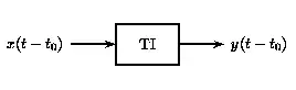 Matemáticamente, un sistema es invariante con el tiempo si un desplazamiento temporal en la entrada x(t-t0) ocasiona un desplazamiento temporal en la salida y(t-t0).