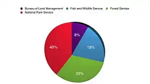 - Establecida en 1905, esta agencia gestiona las tierras públicas en bosques o praderas nacionales, que incluye alrededor de 780 000 km² de la tierra.[23]