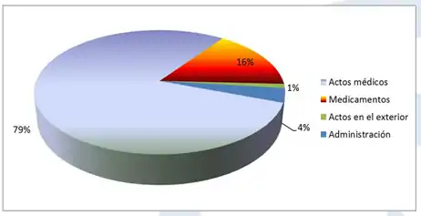 En el siguiente gráfico se observa que en el año 2017 el 79% del gasto de este organismo correspondió a actos médicos, seguido por el 16 % del gasto en medicamentos.