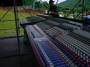 Las mesas de mezcla son la base de un sistema de refuerzo de sonido. Este es el lugar en el cual el operador puede mezclar, ecualizar y agregar efectos a señales provenientes de fuentes de sonido. Las consolas múltiples pueden ser usadas para diferentes aplicaciones en un sistema de refuerzo sencillo. La consola de sala (FOH) puede ser colocada donde el operador pueda ver la acción en escena y escuchar la salida del sistema de altavoces. Algunos recintos con sistemas instalados de manera permanente, tales como instalaciones religiosas y teatros colocan la mesa de mezcla dentro de un pabellón cerrado, aunque este acercamiento es más común para aplicaciones de grabación y radiodifusión. Esto es menos común en la reproducción de sonido en vivo, ya que el ingeniero obtiene mejores resultados cuando puede escuchar lo que la audiencia escucha.[13]