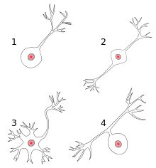 Con base en la división morfológica entre las distintas partes anatómicas de las neuronas y sus diversas formas de organización se clasifican en cuatro tipos:
