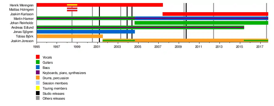 - Andreas Edlund − guitarras, teclados(1995−2015)