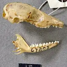 Cráneo de un dunnart de cola larga (Sminthopsis longicaudata).