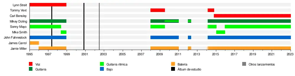 - Lynn Strait: voz (1995-1998; fallecido en 1998)
