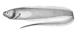 La longitud máxima descrita es de 26,8 cm.[4] Con el cuerpo anguiliforme aplanadp, la dorsal aleta tiene un origen anterior al de aleta anal, ambas largas y frágiles, vejiga natatoria pequeña.[2]
