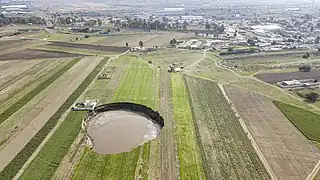 El socavón de Puebla es un hundimiento de suelo que se produjo el 29 de mayo de 2021, en un terreno de cultivo de Santa María Zacatepec (Puebla), a poco más de 20 kilómetros de Puebla de Zaragoza, México. Siendo el Consejo de Ciencia y Tecnología del Estado de Puebla la primera dependencia del gobierno en realizar estudios.