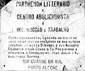 La Sociedade Parthenon Literario fue creada en Porto Alegre el 18 de junio de 1868, en un contexto de efervescencia social y política en Brasil, con la guerra de la Triple Alianza en pleno desarrollo, el ascenso de las ideas republicanas y el fortalecimiento del movimiento abolicionista.