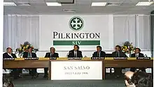 En el ínterin, en 2000, la empresa japonesa Nippon Sheet Glass (NSG) comienza a invertir en el capital de Pilkington, en 2001 NSG y Pilkington se convierten en subsidiarias, en 2004 NSG se convierte en el accionista mayoritario de Pilkington, y en 2006 adquiere definitivamente la propiedad.[4]