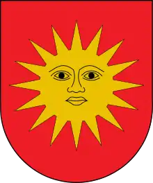 En campo de oro, un sol de gules. Bordura cosida de oro con ocho jaqueles verados de azur y plata. Estas son las armas consideradas por ilustres autores como las puras y propias del linaje. Otros también de notoria autoridad, sustituyen los jaqueles verados de la bordura con ocho cabezas de lobo, de gules. Tirso de Avilés dice que el campo es de gules y el sol de oro, y suprime la bordura. Le siguen varios tratadistas. Y no faltan los que afirman que el campo es de azur y el sol de oro, y que la bordura lleva este lema en letras de sable: "Con sol fueron y volvieron y la batalla vencieron".