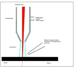 Mediante espejos se focaliza toda la energía del láser en una zona muy reducida del material. Cuando se llega a la temperatura de fusión, se produce la ionización de la mezcla entre el material vaporizado y el gas protector (formación de plasma). La capacidad de absorción energética del plasma es mayor incluso que la del material fundido, por lo que prácticamente toda la energía del láser se transmite directamente y sin pérdidas al material a soldar.