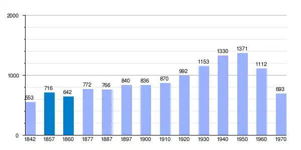| Gráfica de evolución demográfica de Solera[7] entre 1842 y 1970 |