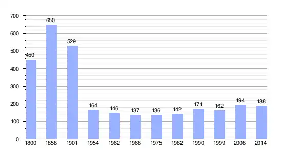 Los datos demográficos contemplados en este gráfico de la comuna de Sollières-Sardières[4] se han cogido de 1800 a 1999 de la página francesa EHESS/Cassini, y los demás datos de la página del INSEE.[5]