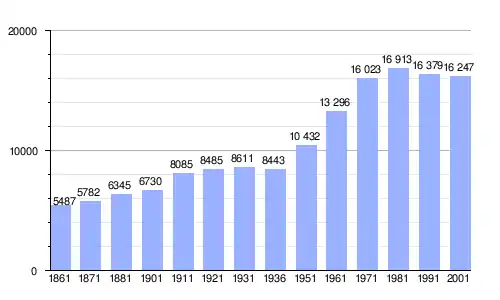 | Gráfica de evolución demográfica de Somma Lombardo entre 1861 y 2001 |