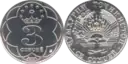 5 Diram | Cu+Ni+Zn | Liso | 18,00 | 2,00 | Emblema nacional - ҶУМҲУРИИ ТОҶИКИСТОН - año de acuñación | 5 ДНРАМ |