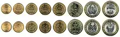 | 5 Diram | Cu+Ni+Zn | Liso | 16,50 | 2,00 | Emblema nacional - ҶУМҲУРИИ ТОҶИКИСТОН - año de acuñación | 5 ДНРАМ | |