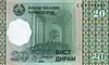 | Monedas | 1, 2, 5, 10, 20, 25, 50 diram y 1, 3 y 5 somoni | |