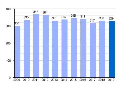 | Gráfica de evolución demográfica de Son Mesquida entre 2009 y 2019 |