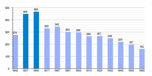 Gráfica de evolución demográfica de Son del Pino[3] entre 1842 y 1960