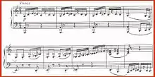 El vivace comienza con un tema muy enérgico, típico de la música de Prokófiev, al estilo de una toccata, que anticipa el tema allegro marcato de su Sinfonía n.° 5 [Ja 2]. Este tema será retomado, en diferentes tonos y maneras, como el estribillo del rondó [Be 10].
