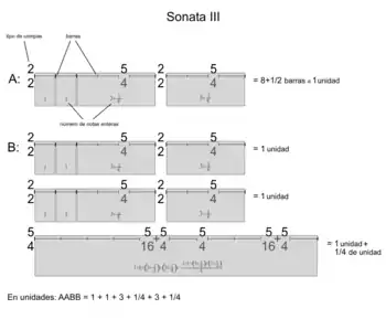 Gráfico sobre el sistema de proporciones aplicado en la Sonata III.