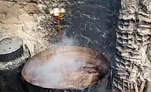 Se pone el calducho al fuego, se le echa pan cortado en rebanadas y se lo deja cocer un rato.[2]
