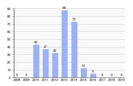 | Gráfica de evolución de la deuda viva del Ayuntamiento de Soportújar entre 2008 y 2019 |