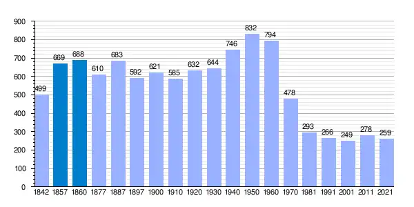 | Gráfica de evolución demográfica de Soportújar[4] entre 1842 y 2021 |