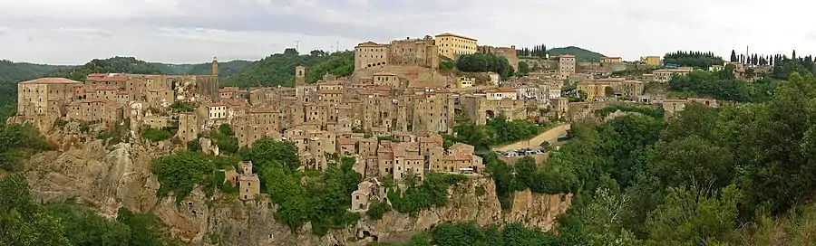 - Sovana, antigua capital del condado homónimo, se desarrolló durante la Edad Media en las proximidades de la necrópolis etrusca preexistente, bajo el control de la familia Aldobrandeschi. Alrededor del año 1000 se construyó el castillo y, aún en la época medieval, se convirtió en un municipio libre y dio a luz a Ildebrando de Sovana, que más tarde se convertiría en el Papa Gregorio VII. Tanto la necrópolis etrusca como el centro histórico hacen de Sovana uno de los sitios arqueológicos e histórico-artísticos más importantes de la Toscana y de Italia.