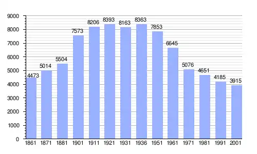 | Gráfica de evolución demográfica de Sorano entre 1861 y 2001 |