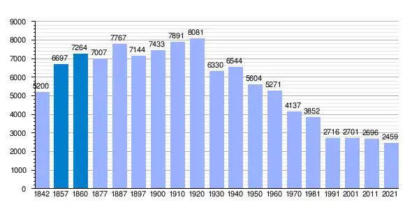 | Gráfica de evolución demográfica de Sorbas[14] entre 1842 y 2021 |