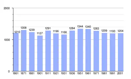 | Gráfica de evolución demográfica de Sorico entre 1861 y 2001 |